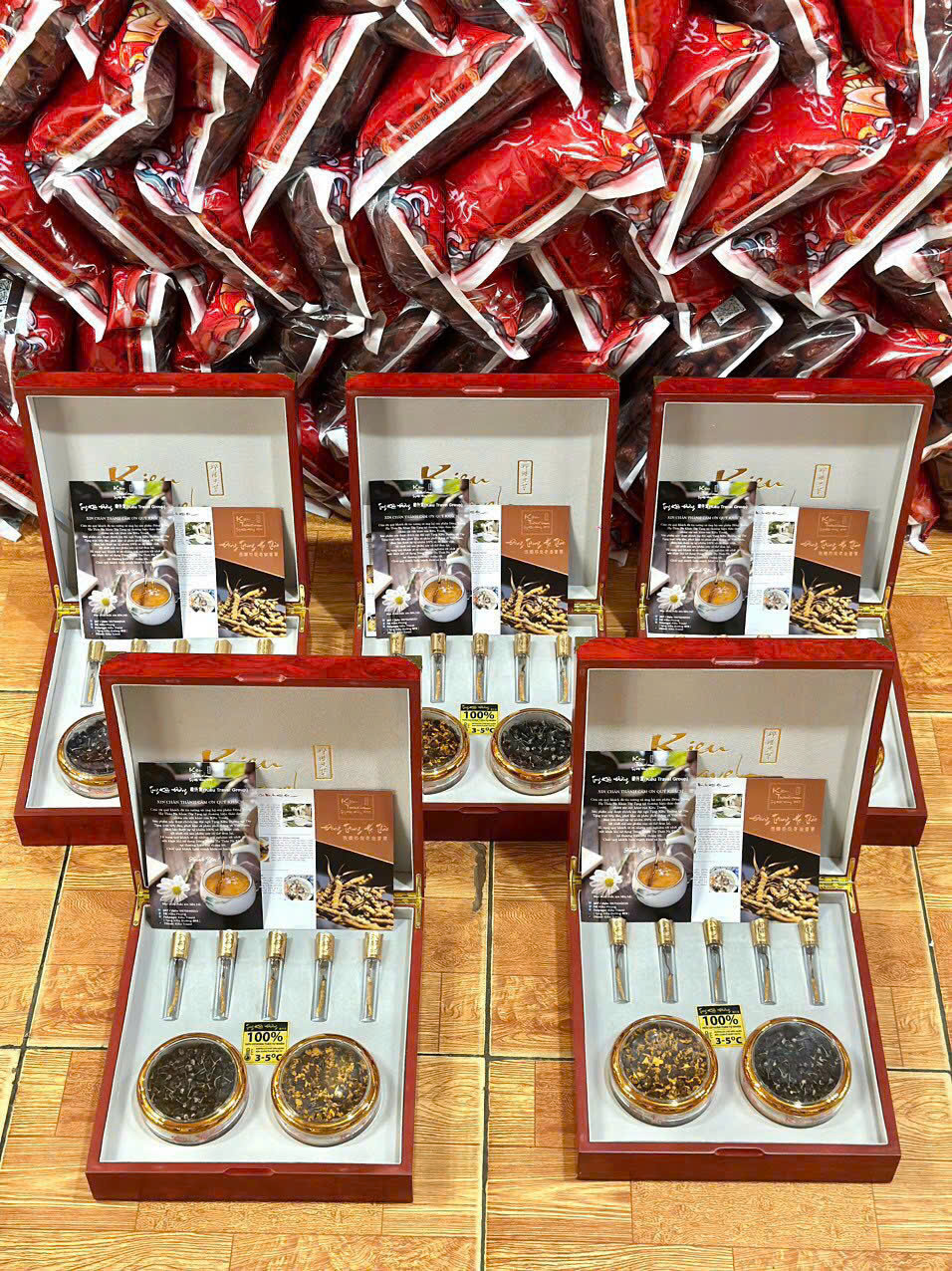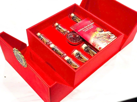 Set quà được đóng gói tỉ mỉ trong hộp quà cao cấp, phù hợp để biếu tặng trong các dịp quan trọng như Tết Nguyên Đán.