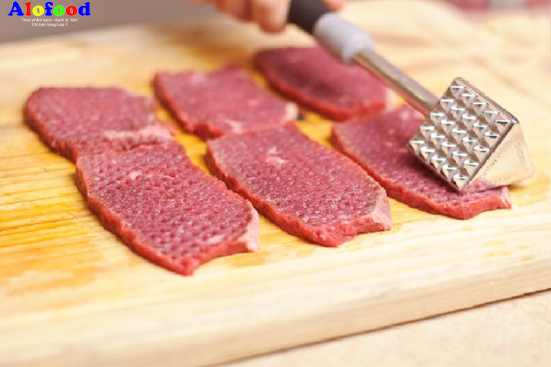 Đập nhẹ miếng thịt bò khi chế biến thịt sẽ mềm