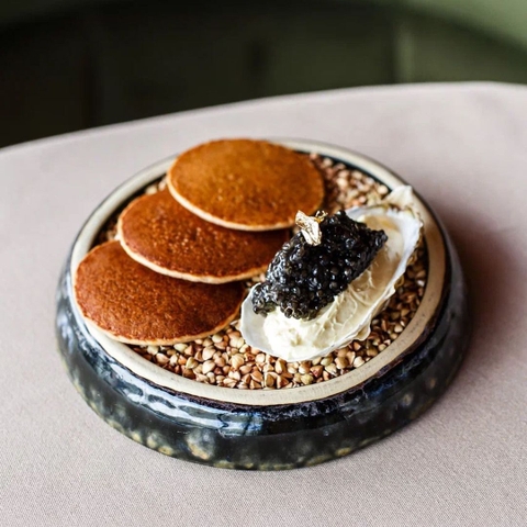 Blini được làm từ lúa mì và kiều mạch với bột yến mạch, có rất nhiều lớp như : kem chua, mứt, mật ong hoặc trứng cá muối (cá thịt trắng, cá hồi, hoặc trứng cá muối cá truyền thống. Người ta cũng có thể ăn kèm với nhiều loại nhân khác nhau như: mứt, phô mai, si rô sô cô la. Bạn sẽ thấy sức hấp dẫn của món bánh này qua cách trang trí đẹp mắt và hương vị thơm ngon đặc trưng của nó tỏa ra.
