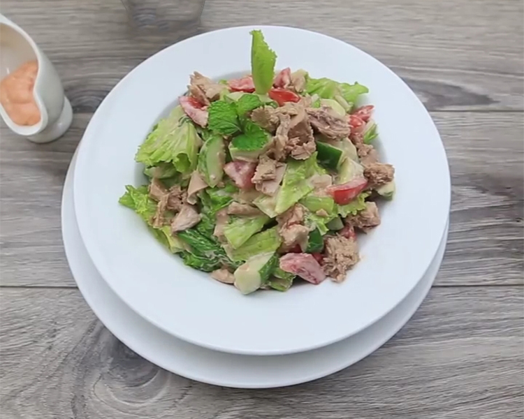 Nếu bạn đang bật chế độ giảm cân thì hãy chuẩn bị một chút rau salad, cà chua bi, dưa chuột, xà lách và sốt mè rang. Đừng quên áp chảo một chút cá ngừ rồi xé ra, trộn đều nhé. Với công thức đơn giản cùng với hương vị thanh đạm, thì đây là một món ăn không thể thiếu được đâu nhé.