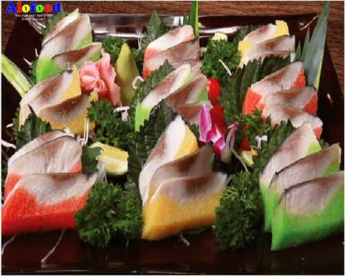 Cá trích ép trứng xanh- thanh mát ướp với wasabi, khi ăn sẽ có vị cay nồng.