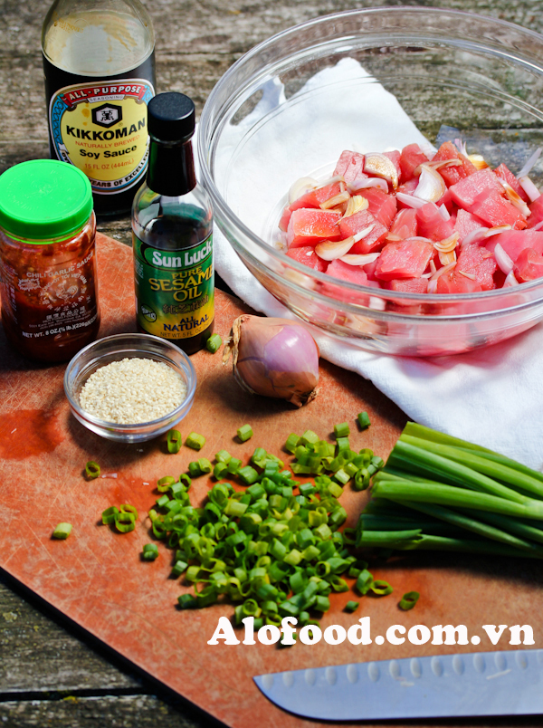- Trộn đều hành khô, hành lá, ớt xay, vừng rang, dầu vừng và tương đậu nành trong một bát nhỏ - bạn có hỗn hợp A.