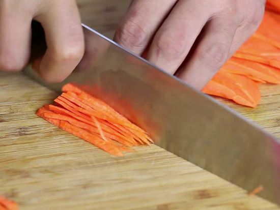 Thái cà rốt sợi làm gỏi cá hồi cuốn