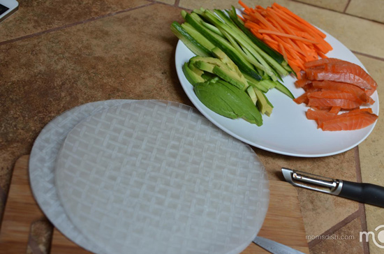 - Bánh đa làm gỏi cá hồi cuốn