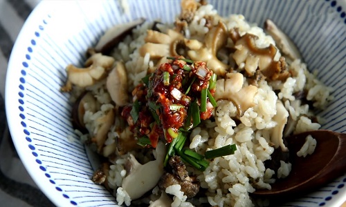 Sau đó cho vào gạo phần nước ruột bào ngư đã lọc trước đó cùng 1 muỗng canh rượu Cheongju, 1 muỗng canh nước tương, 1 muỗng canh dầu vừng và 10 quả bạch quả đã gọt vỏ vào, đun nóng và xào trên bếp cho tất cả các nguyên liệu hoà trộn với nhau.