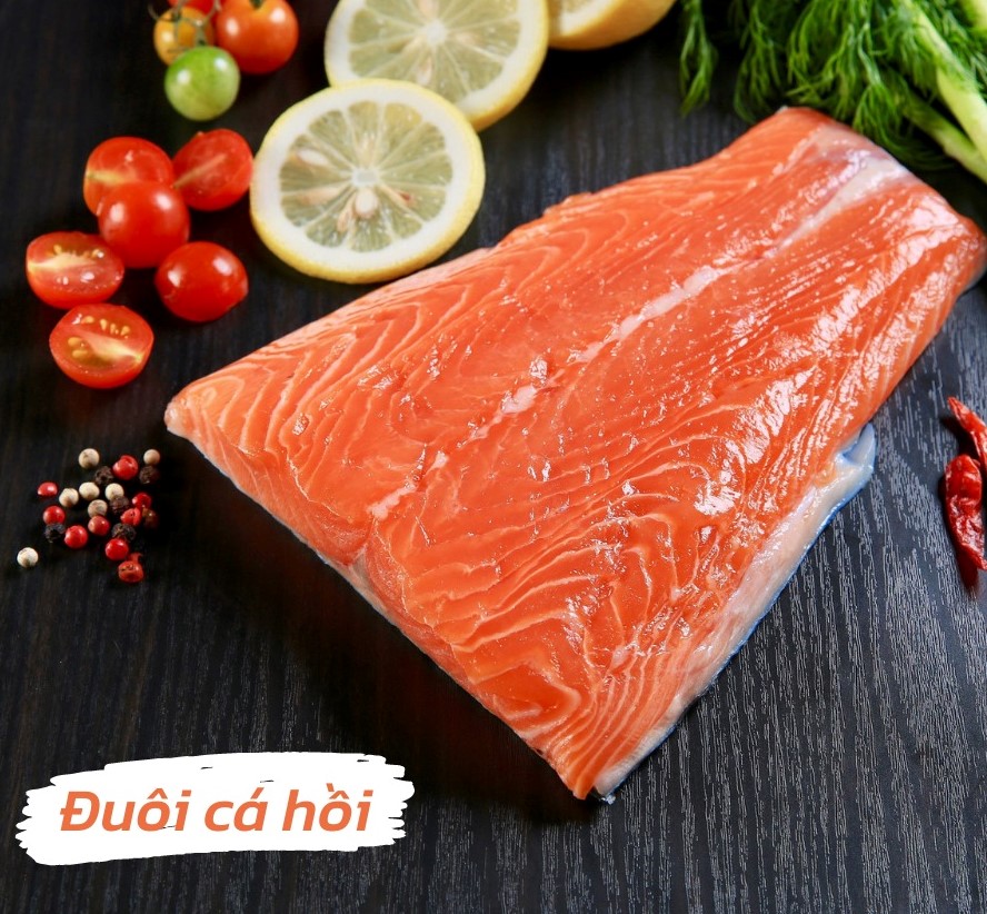 Phần đuôi nhiều nạc, đặc biệt là săn chắc do tập tính hoạt động hay quẫy đuôi của cá hồi. Bạn dễ dàng nấu cháo, làm ruốc cá hồi cực kì dinh dưỡng.