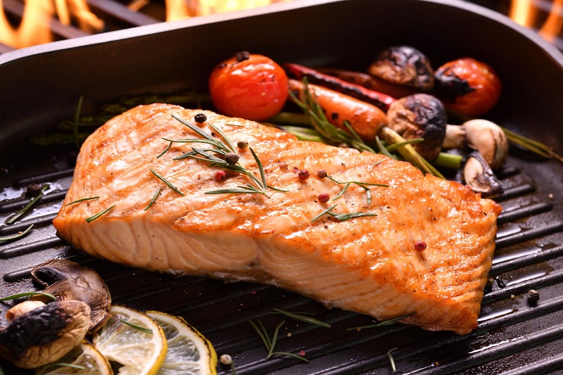 – Omega-3 trong cá hồi giúp hỗ trợ tim mạch và giảm nguy cơ bệnh mạn tính.
