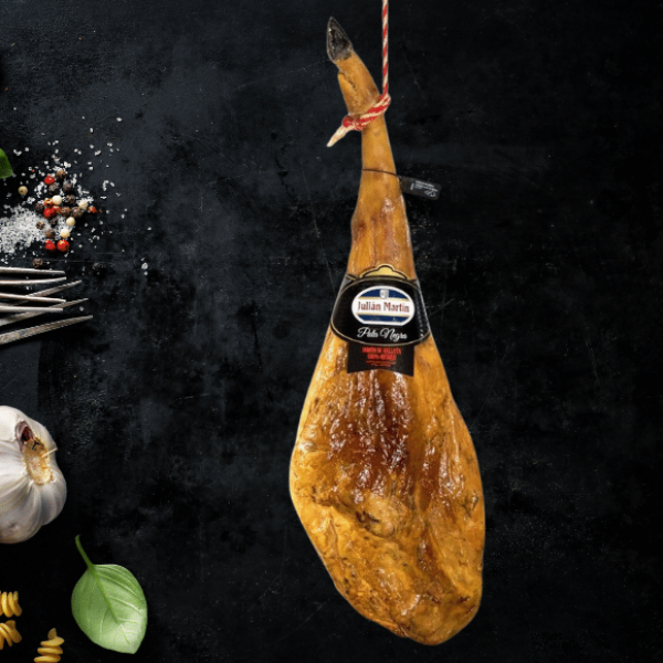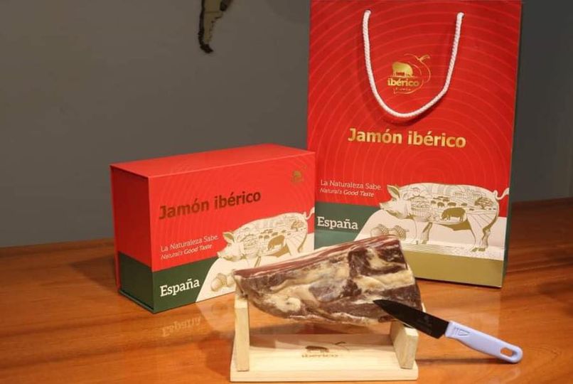 Đùi sau Iberico Bellota có xương muối 36 tháng là món quà tặng Tết 2024 ý nghĩa và đẳng cấp nhất. Được sản xuất bởi chân sau của heo đen Iberico. Giống heo Iberico được lựa chọn sản xuất phải đạt 50-75% Iberico thuần chủng, heo được gắn nhãn đỏ. Heo Iberico được chăn thả tự do trên cánh đồng Dehasa tối thiểu 1 ha/ 1 con. Nguồn thức ăn chính là 100% hạt dẻ sồi vào 4 tháng cuối, đùi heo Iberico trải qua quá trình ủ muối lên đến 36 tháng. Do đó thịt đùi heo muối Iberico Bellota 36 tháng khi thưởng thức vô cùng thơm hạt dẻ sồi, mềm mại giữa các lớp thịt xen kẽ vân mỡ, hoà quyện và tinh tế. Đây là loại đùi heo muối Iberico được mệnh danh là đùi heo muối ngon nhất thế giới mà ai cũng nên thử một lần trong đời.