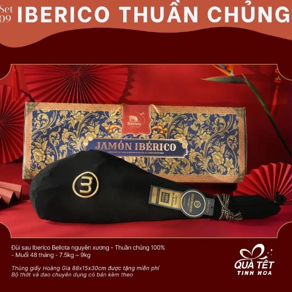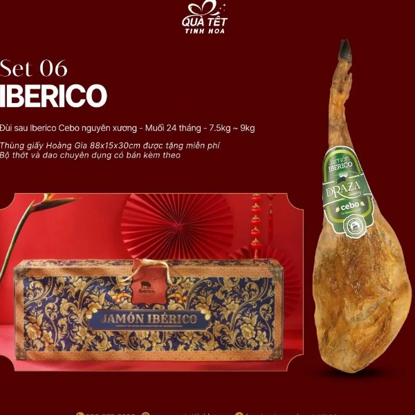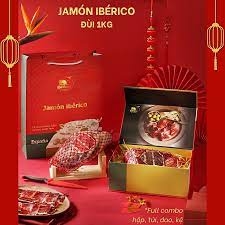 Đùi sau Iberico Bellota có xương muối 36 tháng là món quà tặng Tết 2024 ý nghĩa và đẳng cấp nhất. Được sản xuất bởi chân sau của heo đen Iberico. Giống heo Iberico được lựa chọn sản xuất phải đạt 50-75% Iberico thuần chủng, heo được gắn nhãn đỏ. Heo Iberico được chăn thả tự do trên cánh đồng Dehasa tối thiểu 1 ha/ 1 con. Nguồn thức ăn chính là 100% hạt dẻ sồi vào 4 tháng cuối, đùi heo Iberico trải qua quá trình ủ muối lên đến 36 tháng. Do đó thịt đùi heo muối Iberico Bellota 36 tháng khi thưởng thức vô cùng thơm hạt dẻ sồi, mềm mại giữa các lớp thịt xen kẽ vân mỡ, hoà quyện và tinh tế. Đây là loại đùi heo muối Iberico được mệnh danh là đùi heo muối ngon nhất thế giới mà ai cũng nên thử một lần trong đời.
