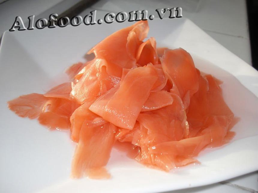 Thưởng thức món Sashimi cá hồi, gừng hồng giúp khôi phục lại nguyên vị của miệng để thưởng thức đan xen giữa các vị cá, tôm. Tức là nếu bạn ăn kết thúc một miếng sashimi với loại cá hồi này, ăn kèm một lát gừng hồng, húp một ngụm canh miso, uống một ngụm trà sẽ làm cho miệng hoàn toàn sạch sẽ trước khi ăn tiếp một miếng cá nữa.