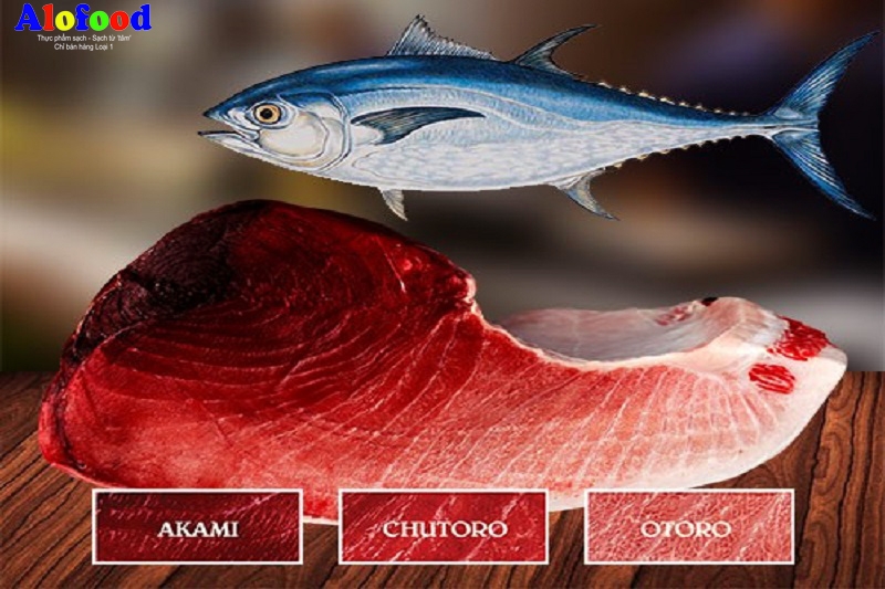 Phần nằm chính giữa mình cá là Akami. Đây là phần thịt rất nạc, ít chất béo, mức giá cũng hợp lý, phù hợp cho những ai không thích phần béo của cá ngừ đại dương.