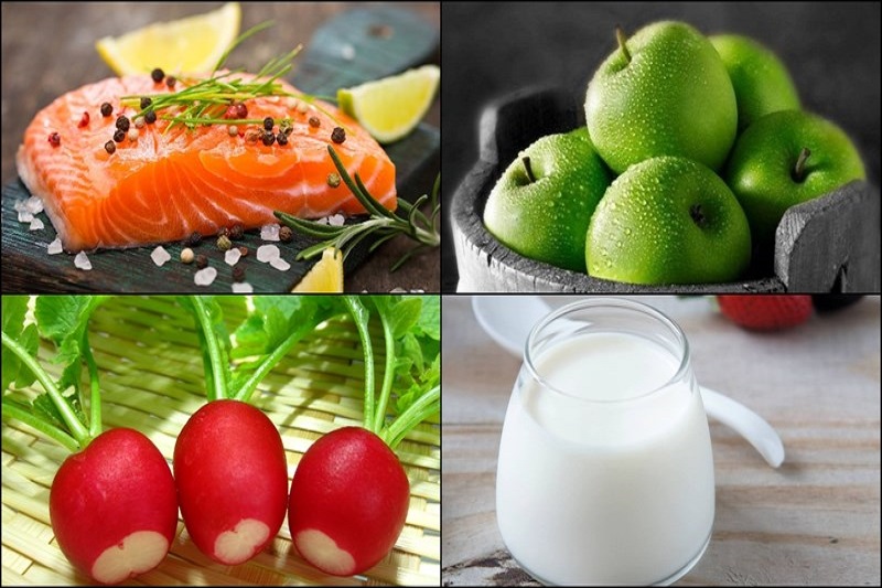Chuẩn bị một cái tô lớn, cho rau xà lách, cải mầm, cà chua, táo xanh, củ cải, dưa leo và cá hồi đã nướng chín vào. Sau đó rưới đều hỗn hợp sốt sữa cho vào tô, dùng đũa trộn đều. Như vậy là đã có món salad cá hồi sốt sữa chua tươi ngon để thưởng thức rồi. Vị mềm thơm, đậm đà của cá hồi kết hợp cùng độ giòn ngọt của các loại rau sẽ khiến bạn khó có thể cưỡng lại.