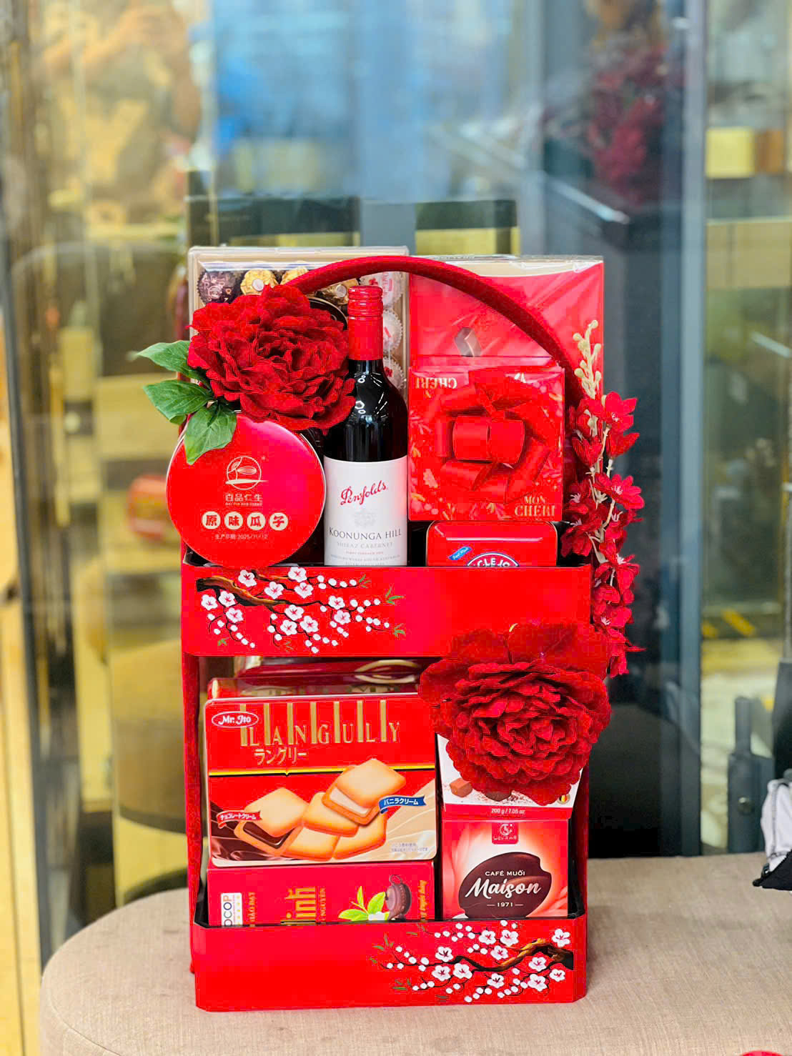 Set Giỏ Quà tết Vang + Bánh kẹo+ Trà Nhập khẩu 07