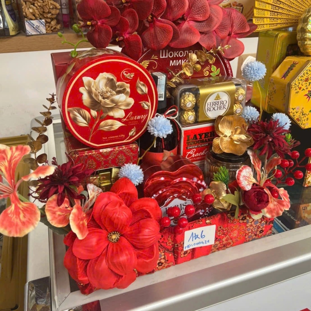 • Từng món quà đều mang một thông điệp riêng, từ sức khỏe, hạnh phúc đến thịnh vượng, tạo nên tổng thể trọn vẹn cho năm mới.