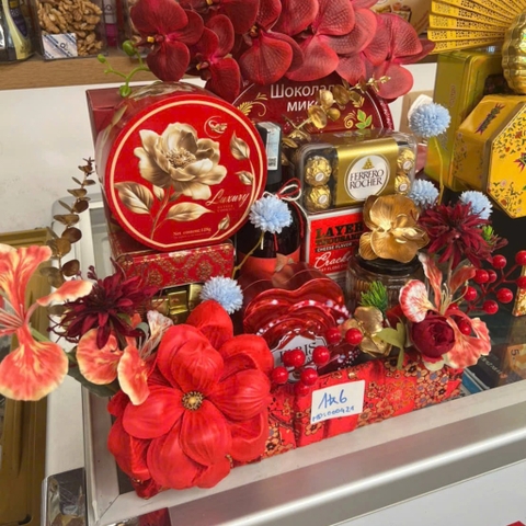 Set Giỏ Quà tết Vang + Bánh kẹo + Trà Nhập khẩu 10