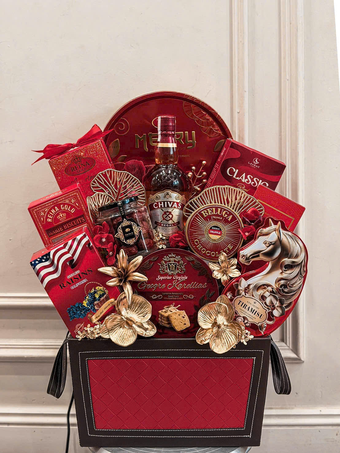 - Từng món quà đều mang một thông điệp riêng, từ sức khỏe, hạnh phúc đến thịnh vượng, tạo nên tổng thể trọn vẹn cho năm mới.