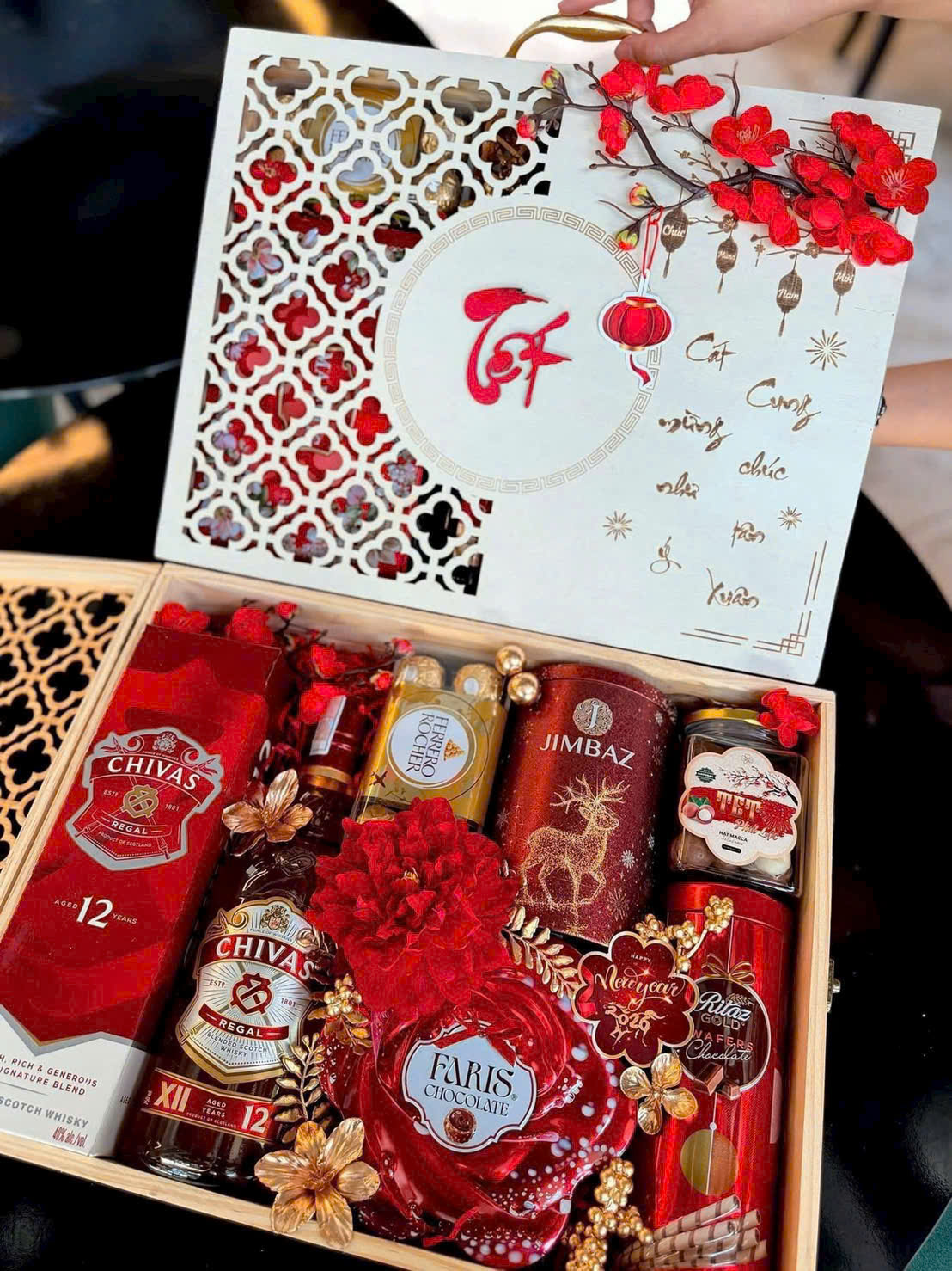 - Từng món quà đều mang một thông điệp riêng, từ sức khỏe, hạnh phúc đến thịnh vượng, tạo nên tổng thể trọn vẹn cho năm mới.