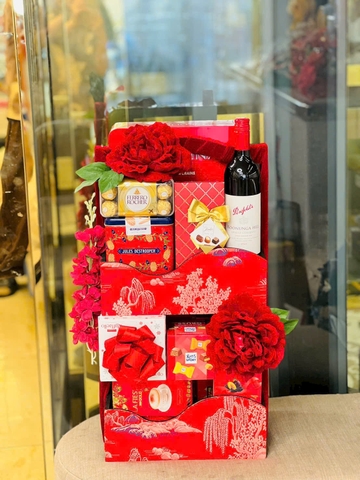 Set Giỏ Quà tết Vang + Bánh kẹo + Trà Nhập khẩu 13