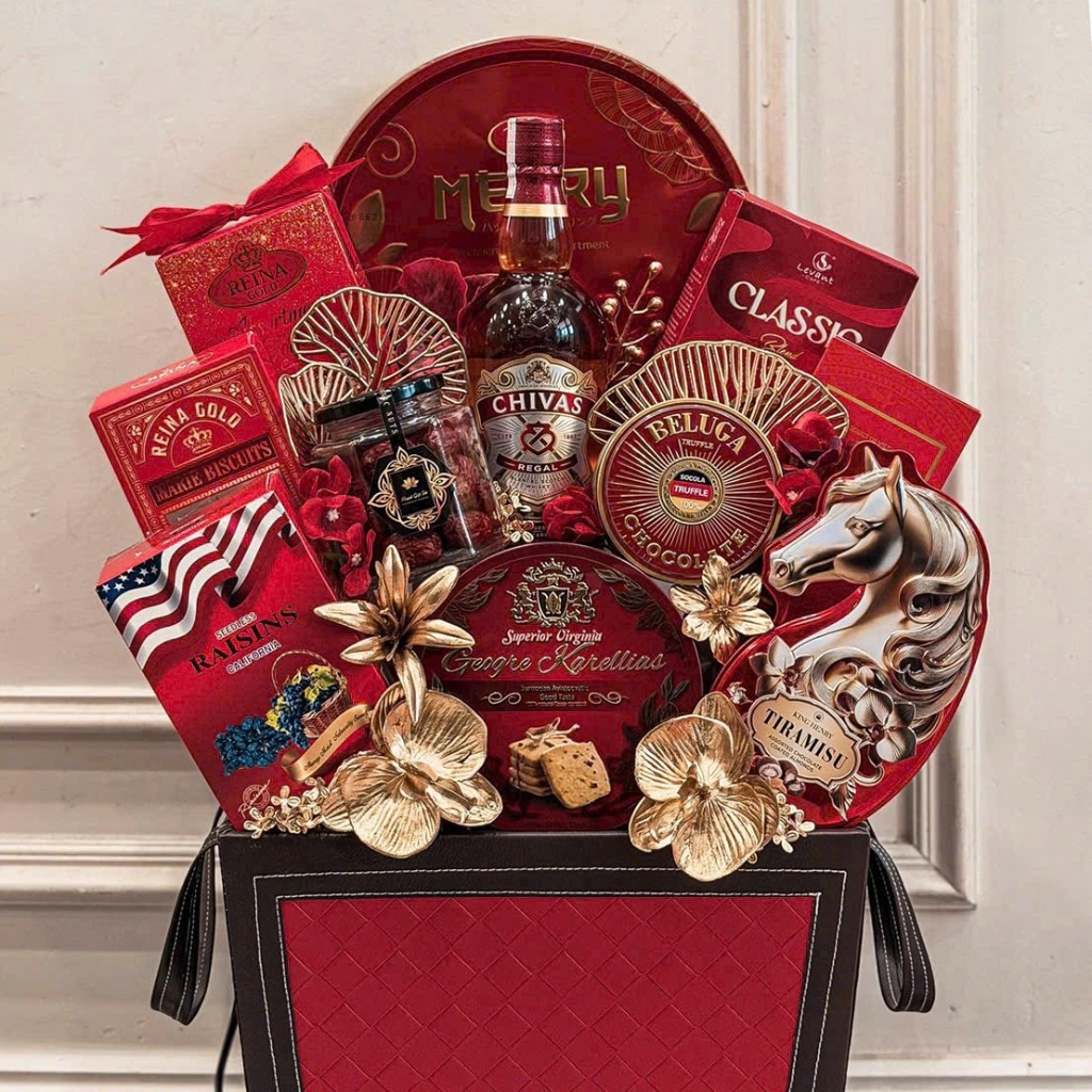 - Từng món quà đều mang một thông điệp riêng, từ sức khỏe, hạnh phúc đến thịnh vượng, tạo nên tổng thể trọn vẹn cho năm mới.