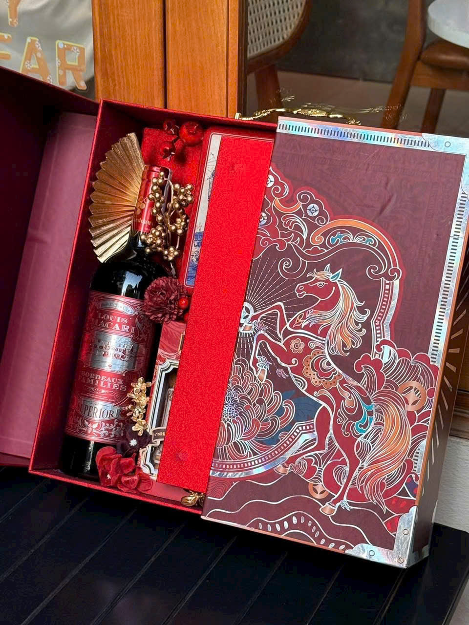 Set quà được đóng gói tỉ mỉ trong hộp quà cao cấp, phù hợp để biếu tặng trong các dịp quan trọng như Tết Nguyên Đán.