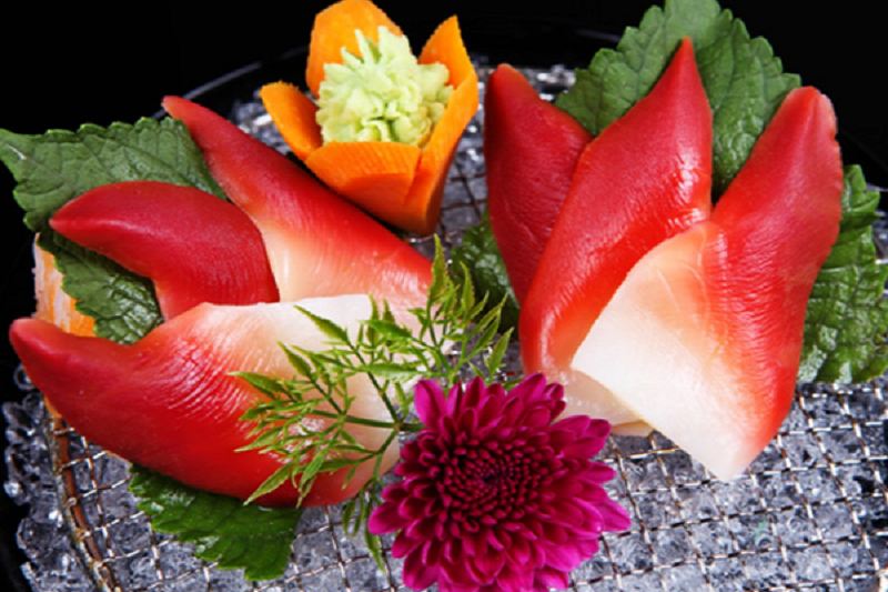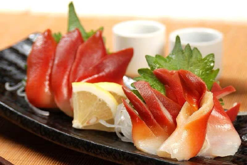 Như món Sashimi, dùng kèm với gừng đỏ, Wasabi và nước tương Nhật.