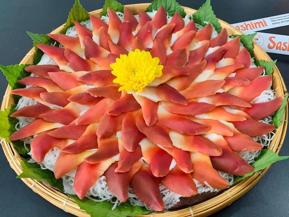 Sashimi sò đỏ ăn kèm #gừng_hồng_Nhật , #rong_biển_nhật, #mù_tạt_Nhật, #Nước_tương_nhật , #tía_tô_củ_cải ...