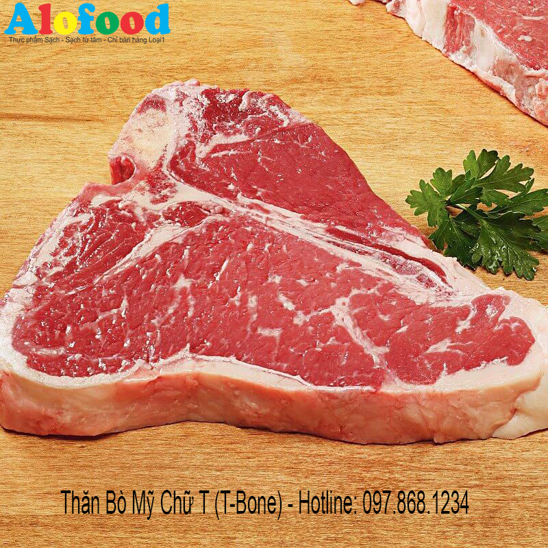 - T-bone: bao gồm miếng xương ở chính giữa hình chữ T và 2 bên là 2 phần thịt mềm thơm. Phần thịt nhỏ hơn là Tenderloin, phần thịt lớn hơn là Stiploin. T-bone với thanh xương ở giữa nên đảm bảo được các mô liên kết giữa hai phần thăn, giữ nguyên hương độ mềm mọng và không làm mất nước khi chế biến.