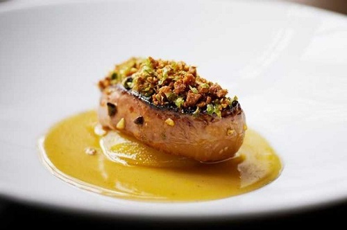 Gan ngỗng kết hợp với cá ngừ sốt Tartar và cà tím caramel