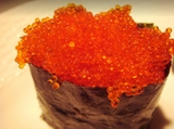 Trứng Cua Tobiko. Loại trứng cá nhỏ này có màu có màu cam hay đỏ và là trứng của cá chuồn (Flying Fish). Chúng cũng giòn như những loại trứng cá khác. Tobiko được dùng trong các món ăn Nhật và Hawaii.
