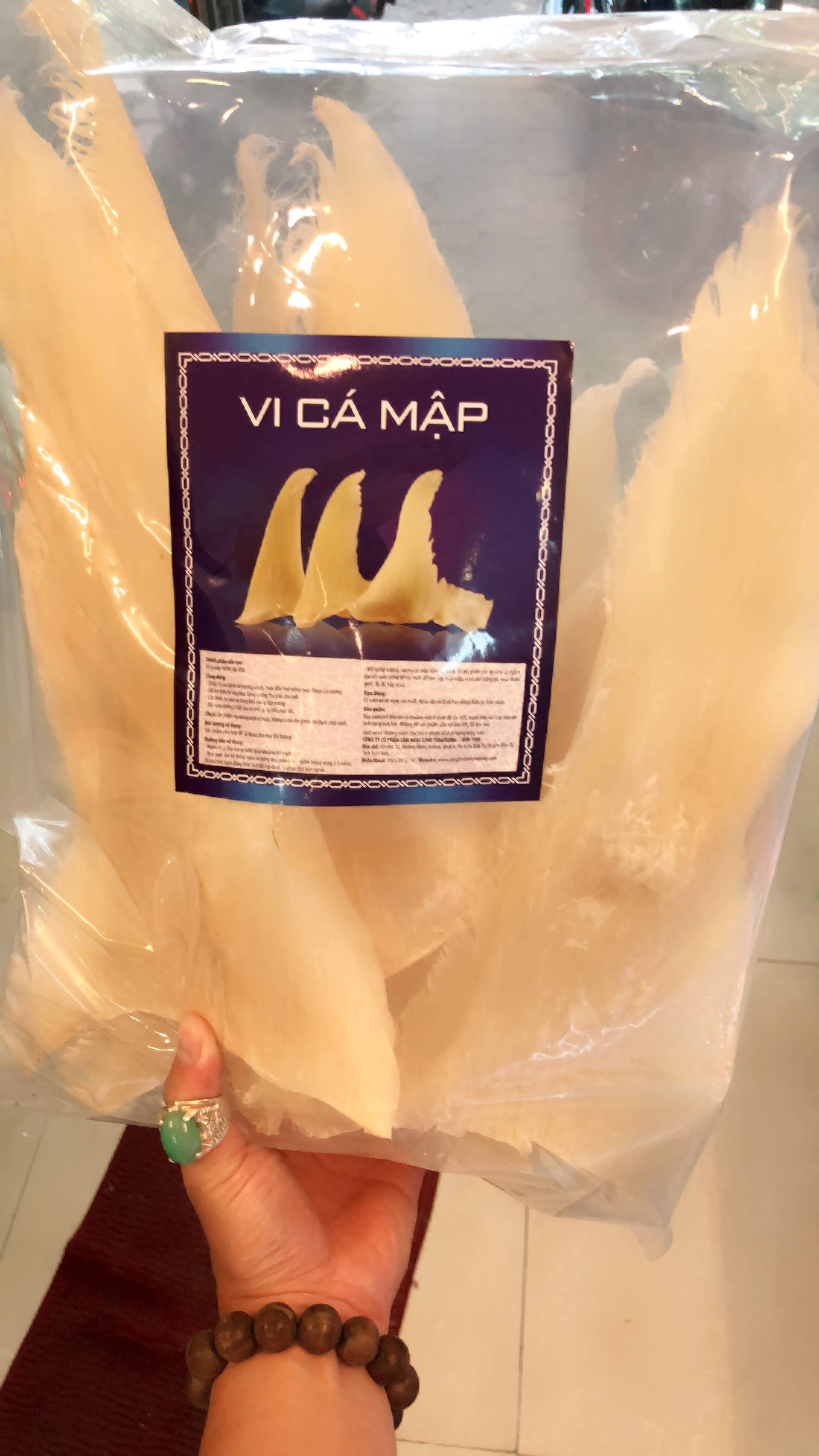 – Vi cá mập tươi đã được làm sạch và bảo quản lạnh.