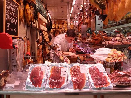 Đùi heo muối Iberico trong 1 cửa hàng xứ bò tót