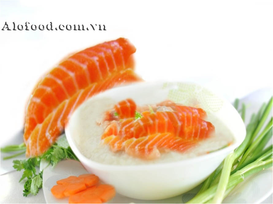 – Múc cháo ra bát, cho cá hồi lên trên, thêm ít hành lá. Vậy là cả nhà đã có bát cháo cá hồi thật hấp dẫn, lại bổ dưỡng mà tiết kiệm chi phí.